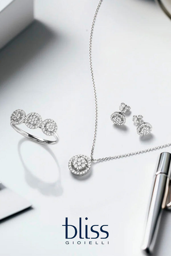 Collana con diamante punto luce a griffe regolari in oro bianco 375